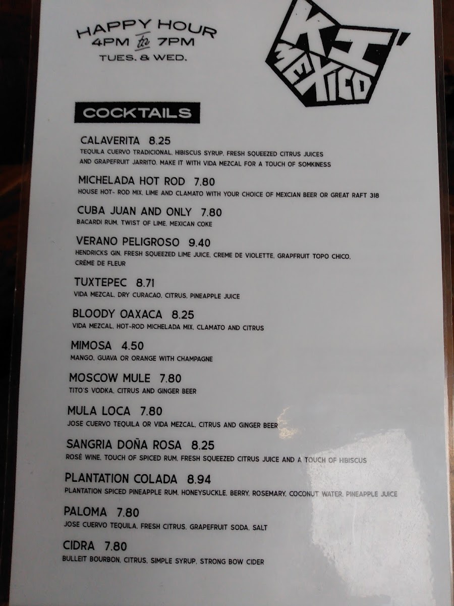 I had dinner at Ki' Mexico yesterday with a couple of colleagues. We ordered tacos and hamburgers, which they only offer the burger on Wednesdays. The burger was so good and tasty and the service was great!