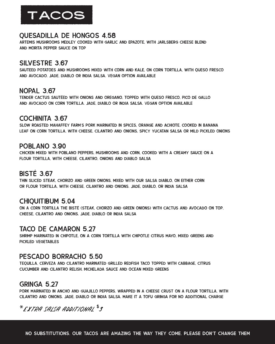 This spot is my go-to. Started from a food truck to what it is today with awesome bands, like Shayliff, playing this Saturday night. Order a gringa taco or pescado borracho with either a hand crafted michelada made from their own recipe or divulge in their crazy selection of mezcals and tequilas.